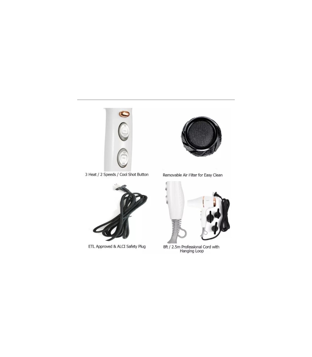 این سشوار حرفه‌ای با توان 1800 الی 2200 وات و طراحی خاص ، ترکیبی از قدرت و زیبایی را ارائه می‌دهد. موتور قدرتمند آن امکان خشک‌کردن سریع موها را فراهم می‌کند و گزینه‌ای عالی برای سالن‌های پرمشغله محسوب می‌شود. طراحی سبک و ارگونومیک، استفاده طولانی‌مدت از سشوار را بدون ایجاد خستگی امکان‌پذیر کرده است.
