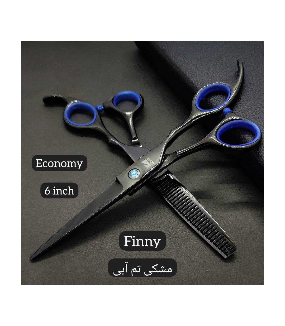 ست قیچی کات و پیتاژ پلاس مشکی 6 اینچ فینی شیاردار کد: PR-178