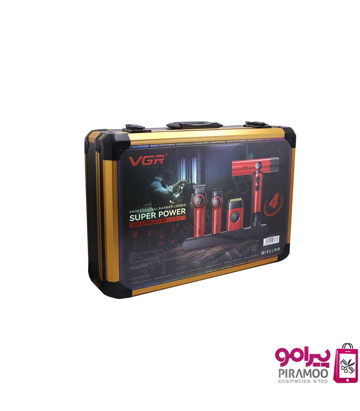 ست 4 در 1 ماشین اصلاح خط زن ، حجم زن ، شیور و سشوار وی جی آر کد: PR-3021