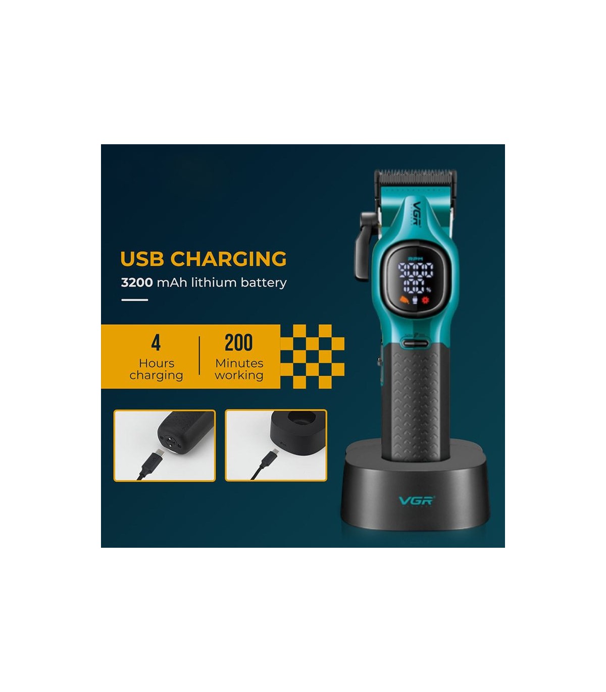 موتور پرقدرت دستگاه عملکردی پایدار دارد و در کنار تیغههای مقاوم، مو را با دقت بالا برش میدهد. باتری لیتیومی قدرتمند آن تا 200 دقیقه استفاده مداوم را با 4 ساعت شارژ کامل فراهم میکند و از طریق درگاه Type-C بهراحتی قابل شارژ است. وجود نمایشگر LED نیز وضعیت شارژ و نیاز به تمیزکاری تیغه را نشان میدهد.