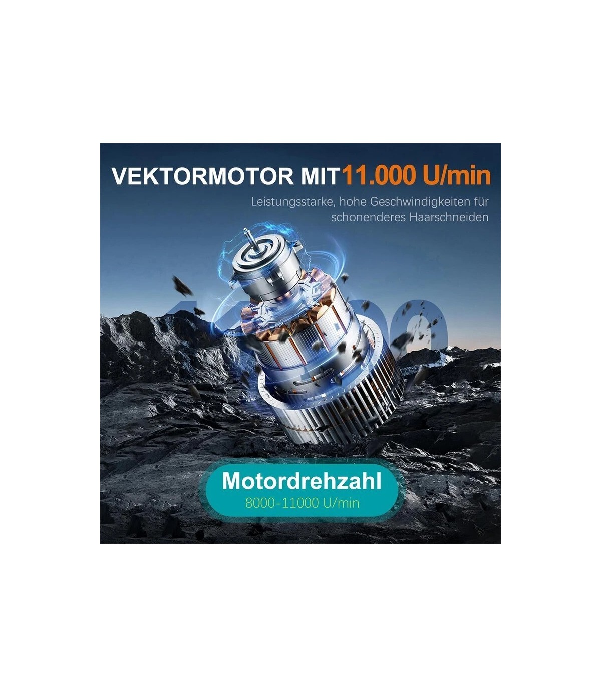 این مدل با موتور وکتور (Vector Motor) بسیار قدرتمند کار میکند و سرعت چرخش بین ۸۰۰۰ تا ۱۱۰۰۰ دور در دقیقه (RPM) دارد، که باعث میشود حتی موهای ضخیم و پرپشت نیز بهصورت صاف، سریع و بدون گیر کردن اصلاح شوند.