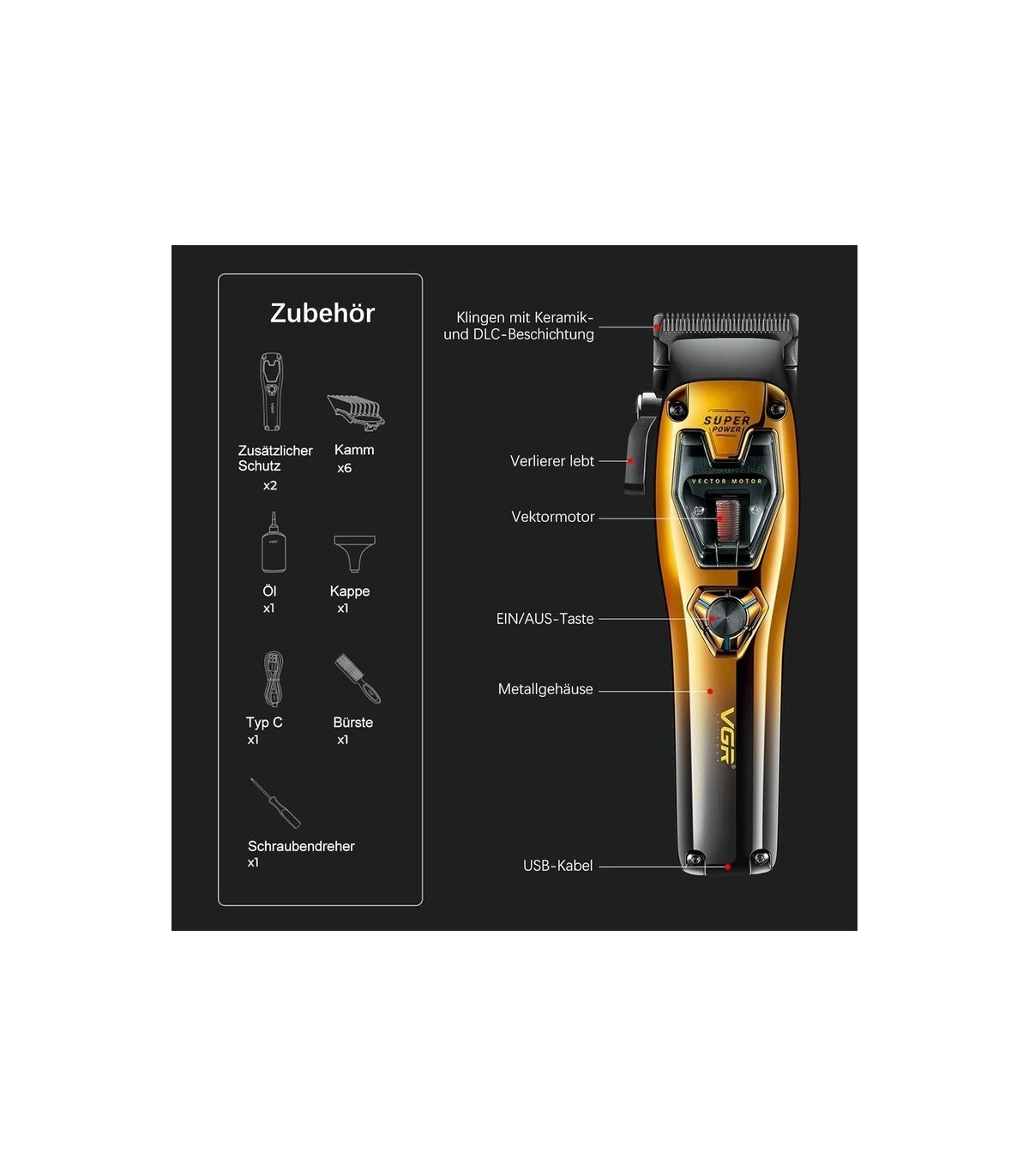 ماشین اصلاح VGR V-668 یکی از مدلهای حرفهای برند VGR است که با ترکیب فناوریهای پیشرفته و کیفیت ساخت بالا طراحی شده است تا بهترین تجربه اصلاح را هم در خانه و هم در سالنهای آرایشگری فراهم کند.